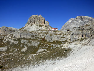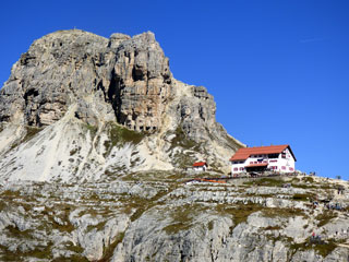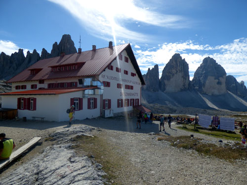 definitiv die Dreizinnenhütte. Auf 2.405 Metern Höhe thront sie direkt