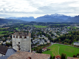 Ausblick auf die Salzach, die Alpen und die Altstadt, der so schön ist, dass